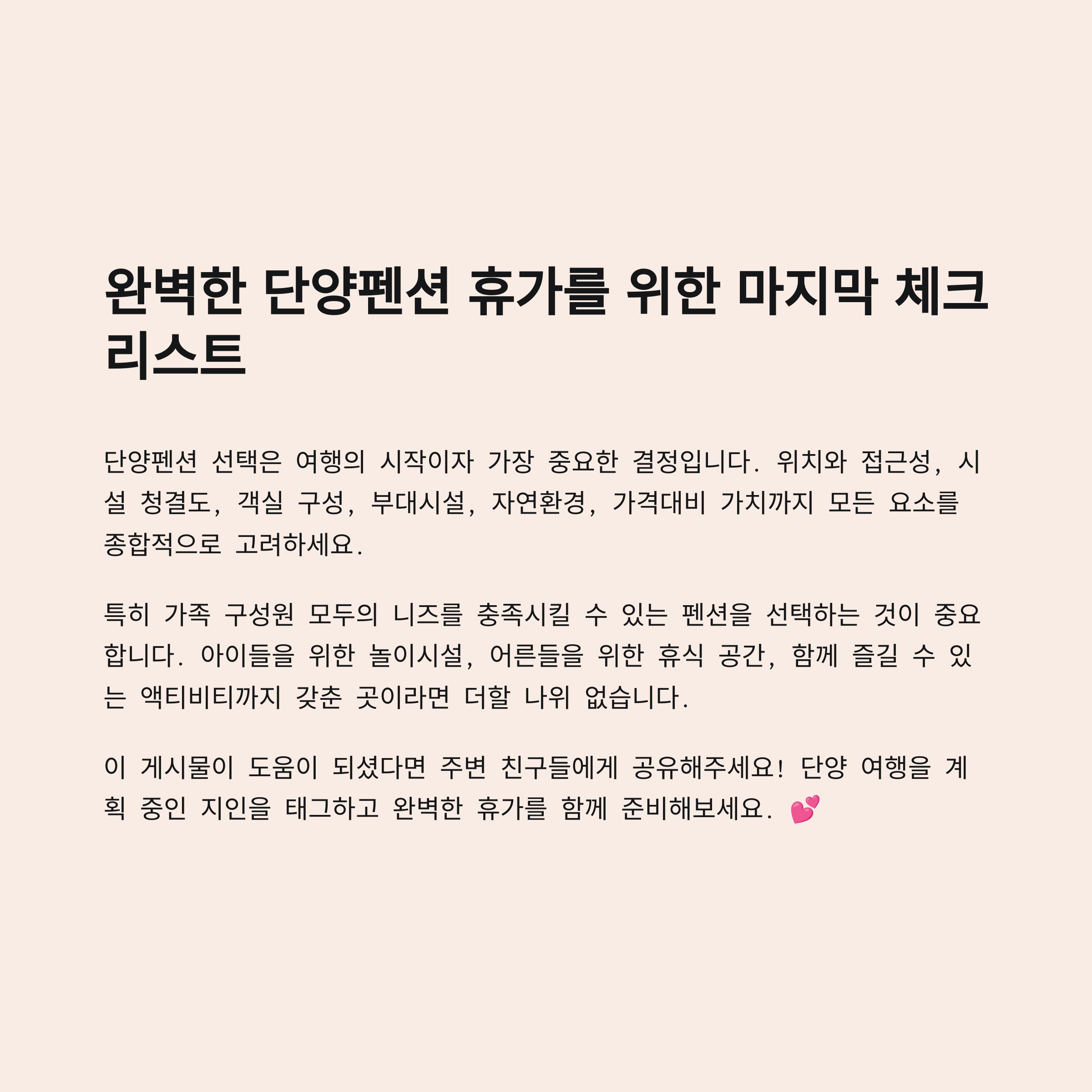 단양은 충청북도의 대표적인 관광지로, 아름다운 자연경관과 다양한 액티비티로 사랑받는 곳이에요. 하지만 수많은 펜션 중에서 나에게 맞는 곳을 선택하는 것은 쉽지 않죠. 이 글에서는 전문가들이 추천하는 핵심 선택 기준과 함께, 실제 이용객들의 경험을 바탕으로 한 실용적인 팁들을 공유해드릴게요! 😊